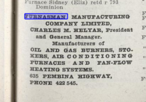At that time, Winnipeg did not yet have natural gas service. Once natural gas became available, Helyar began manufacturing forced air furnaces, and by the 1950s Furnasman had captured approximately 90% of the heating market in Winnipeg. [1]